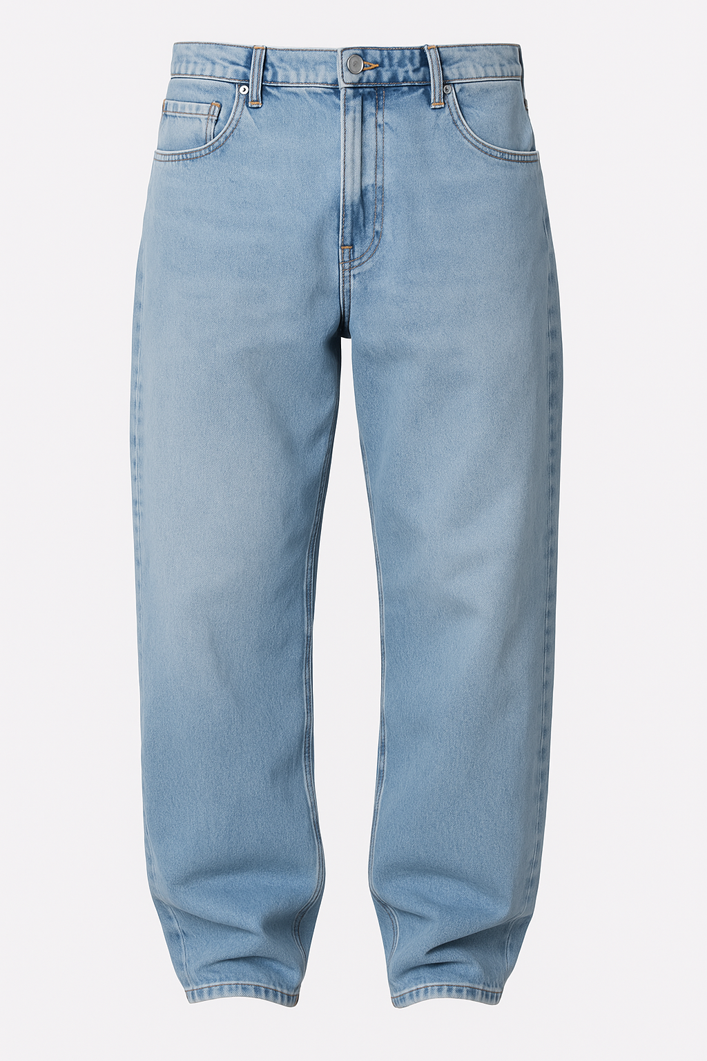 Calça jeans masculina tamanho 42, na cor azul clara, ideal para quem busca estilo e conforto. Modelo baggy com caimento solto, oferecendo liberdade de movimento e visual urbano. Confeccionada em jeans macio e resistente, perfeita para o dia a dia. Combina com camisetas e tênis para um look moderno e despojado.